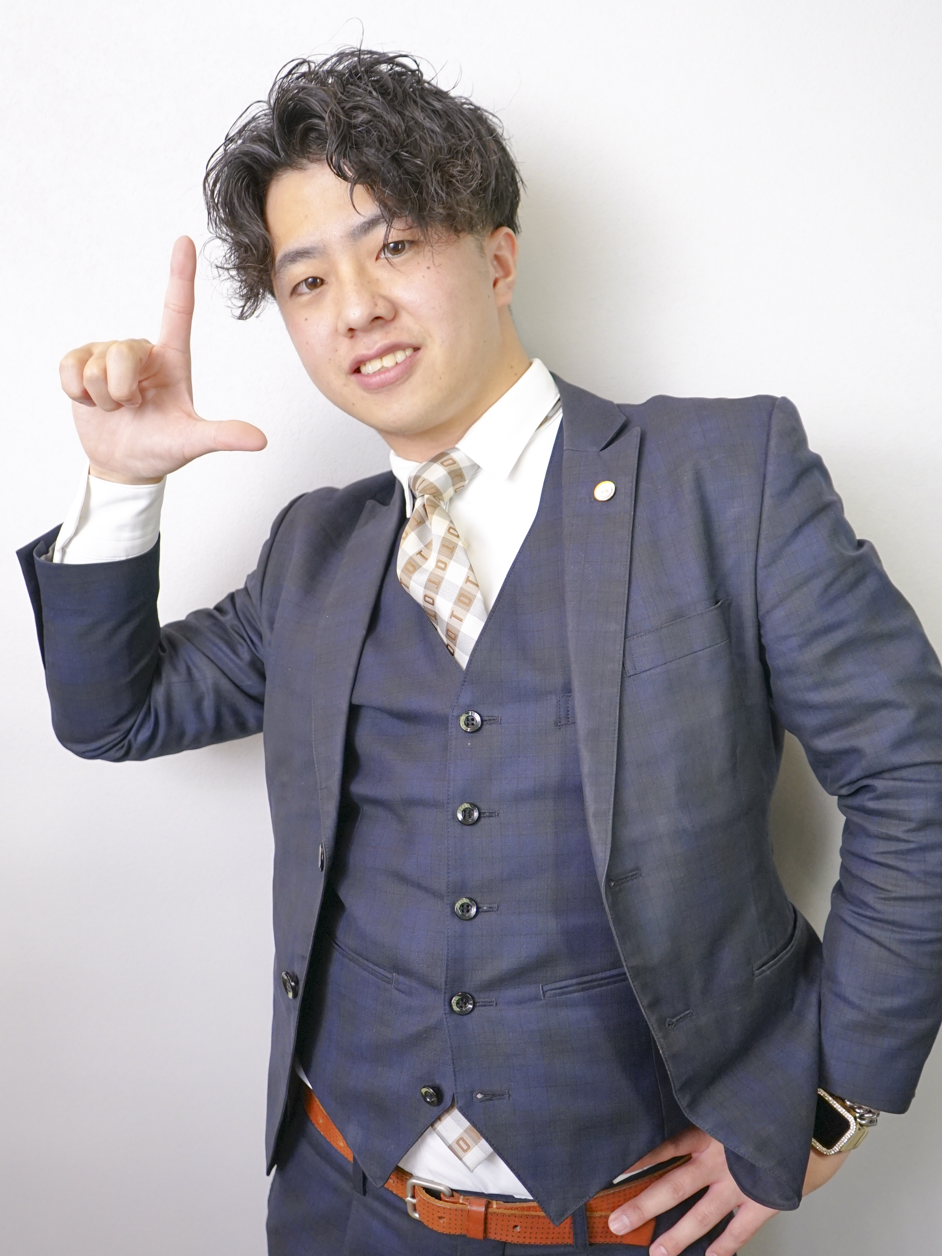 いつもはテーラーとして紳士だが会社では みんなをイジって会社の雰囲気を明るく笑顔にするギャップの持ち主。会社メンバーの結婚式の2次会や決起会の段取りは誰よりも完璧にこなす天才。どうやら恋人をつくる段取りは10%のようだが、噂によると社内でイジるキャラのギャップ狙いは、まさかこの段取り120%の一つかもしれない…㊙️